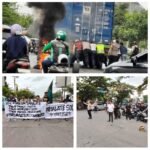 Polsek Tamalate dan Warga Bantu Kompak Dorong Mobil Mogok di tengah aksi unras.
