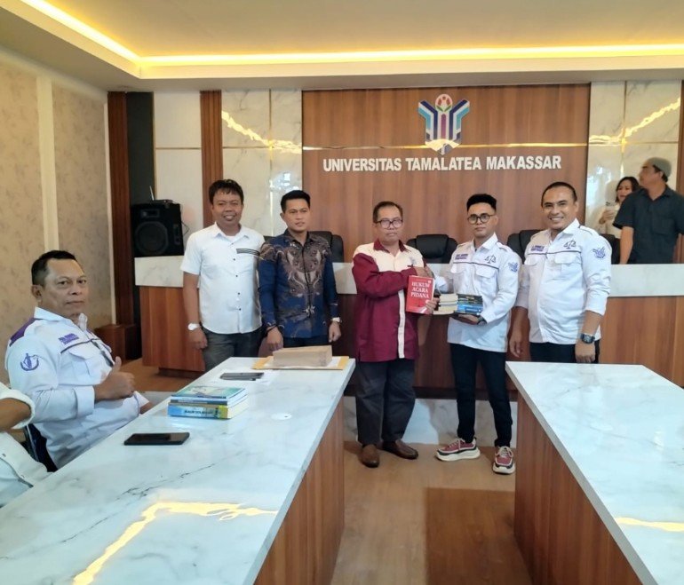 Buku-buku tersebut diserahkan secara simbolis oleh Ketua Tingkat Mahasiswa Hukum 2025, Nur habibi, kepada Rektor Universitas Tamalatea Makassar usai pelaksanaan tatap muka dan diskusi bersama mahasiswa.