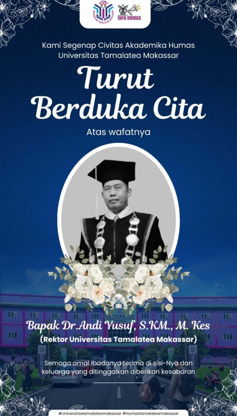 “Tentu kami semua dari pihak yayasan sangat merasakan duka mendalam dan kehilangan sosok pemimpin yang baik dan bijaksana di kampus UTAMA. Mewakili seluruh Pembina dan Pengurus Yayasan Pendidikan Tamalatea Makassar, kami mengucapkan turut berduka cita. Semoga almarhum husnul khatimah. Aamiin,” ujarnya.