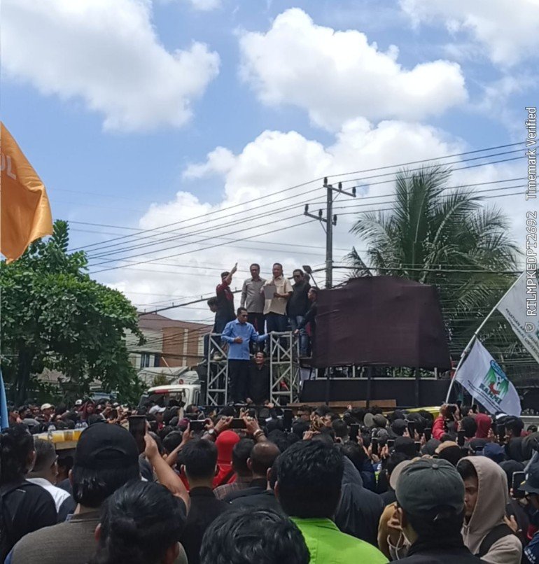 Hingga aksi dinyatakan selesai dan massa bubar, Gubernur Rudy Mas’ud TIDAK KUNJUNG MUNCUL. Tidak ada jawaban, tidak ada sambutan, hanya pagar tinggi dan pintu tertutup yang menyambut mereka.